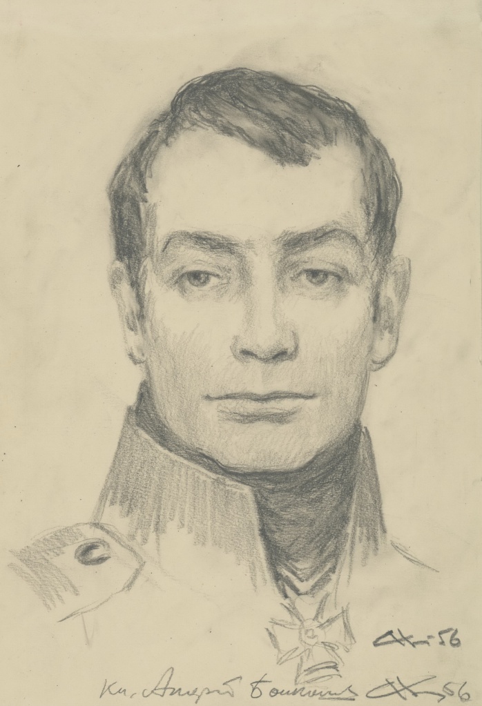 ("Князь Андрей Болконский", эскизный портрет. Николаев А. В., иллюстрация к роману Л.Н. Толстого "Война и мир", 1956)