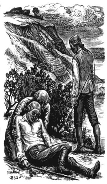 (Гринев, Савельич и Швабрин после дуэли)
