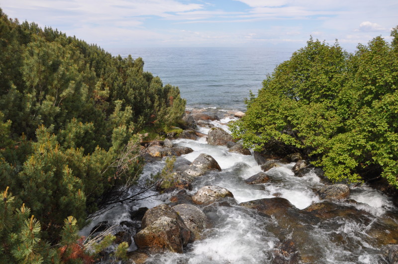 На берегу Байкала расположились кедровые стланики, багульник, брусника и другие кустарники, растущие во влажном климате. Здесь же встречаются некоторые виды альпийской растительности: кипрей широколистный, круглолистные и тощие березки, смородина душистая, плауны лишайники.