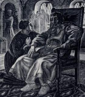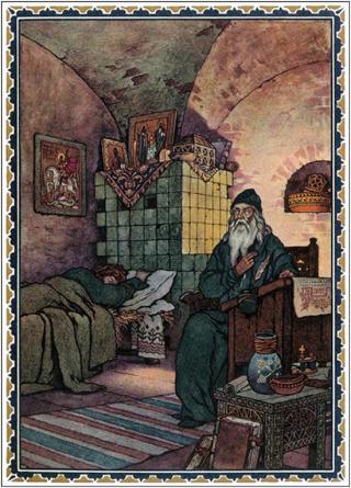 Кроткий и смиренный старец, монах-летописец Чудова монастыря - один из центральных персонажей трагедии Пушкина, он является единственным свидетелем трагического убийства. Пимен непреднамеренно провоцирует своего келейника Григория на самозванство одним лишь неосторожным упоминанием о равном возрасте Отрепьева и убиенного царевича. При этом он декларирует власть царя, как данную от Бога, и впоследствии призывает народ каяться за грехи царя-детоубийцы.