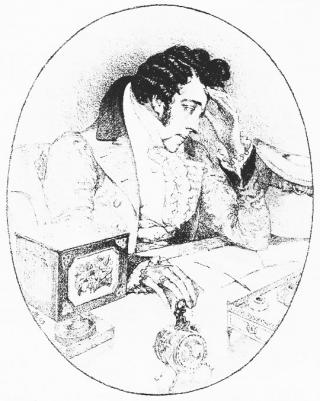 (Рисунок А.С. Пушкина в рукописи "Евгения Онегина", 1830 год)