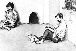 - Костылин целями днями спит и ждет ответного письма, а Жилин рукодельничает, занимается починкой.