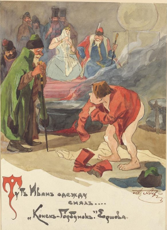 ("Иван собирается броситься в котел". А.Ф. Афанасьев: Иллюстрация к сказке П.П. Ершова «Конек-Горбунок», 1897-98гг)