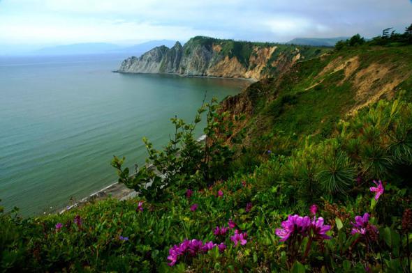 Юго-восточная часть области, границей которого является побережье Шелихова залива, - это труднопроходимые заросли кедрового стланика. А на граничащих с тундрой участках преобладают однобокие деревья, по форме напоминающие флаг. Такая особенность растительности является следствием жестокой борьбы с порывистыми ветрами.