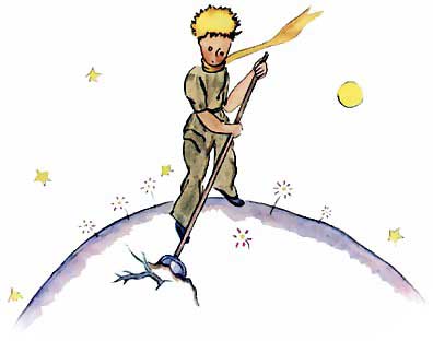 Главный герой литературной сказки обладает детской непосредственностью и прямотой суждений, подкреплёнными (но не замутнённую) опытом взрослого человека. От этого в его действиях парадоксальным образом совмещаются ответственность (внимательный уход за планетой) и спонтанность (внезапный уход в путешествие). В произведении он – образ правильного, не замусоренного условностями образа жизни, который наполняет её смыслом.