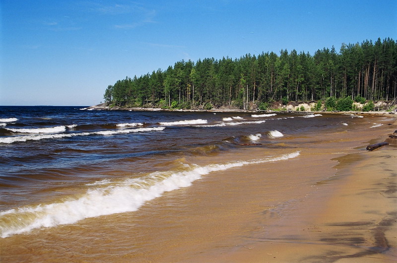 Могущественное и величественное, с длинными береговыми линиями и множеством притоков, находится в Карелии Онежское озеро.
