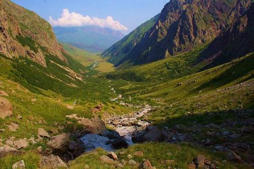 Ещё одно ущелье Северной Осетии — Кармадонское, в мае покрывается изумрудным травянистым пологом, где яркими красками пестрят лужайки и цветочные ковры. Цветов здесь действительно много — это и лютики, и примулы, и анемоны с незабудками. В конце лета добавляются новые краски — расцветают красные маки, белые крупки, розовые ромашки и разноцветные колокольчики.