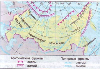 Чаще всего в нашей стране действует два фронта - арктический и полярный. Они перемещаются к югу или северу в разные климатические периоды.