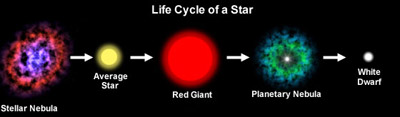 После того как в стареющей звезде выгорит весь водород, ее ядро сжимается и разогревается, - это способствует расширению ее внешних слоев. Эффективная температура звезды падает, и она превращается в красного гиганта. Разреженная оболочка звезды, очень слабо связанная с ядром, со временем рассеивается в пространстве, перетекая на соседние планеты, а на месте красного гиганта остается очень компактная звезда, называемая белым карликом.