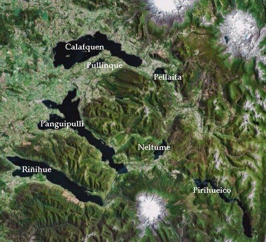 Особой достопримечательностью Чили считается система из семи природных водоёмов, расположенных на юге страны и соединённых между собой реками. Это озёра: Калафкен, Понгипульи, Риньиуэ, Пириуэйко, Нельтуме, Пульинке и Пельяфа. Все они находятся в области коммуны Пангипульи в окружении вулканов Ланин, Кетрупильян, Вильярика и Мочо – Чосуэнко. Именно благодаря им здесь действуют несколько геотермальных источников.