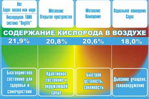 Кислород способствует избавлению человеческого организма от углекислоты, в которой накоплены яды и токсины. Если человек редко выходит на свежий воздух, поверхностно дышит, или в воздухе содержится малая концентрация кислорода, человеческий организм переносит отравление, приводящее к различным заболеваниям.