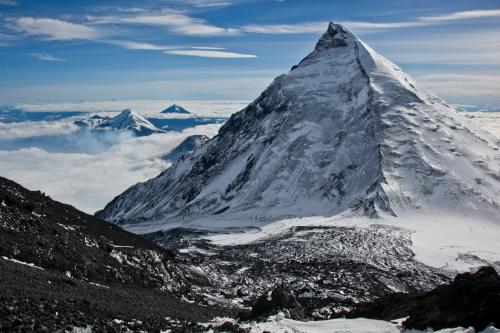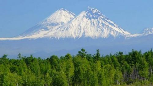 Активный стратовулкан Ичинская Сопка (3621 метров) в самом центре Камчатки имеет вид трех конусов, полностью покрытых ледниками. Один из этих конусов - действующий вулкан, являющийся второй по высоте вершиной Срединного хребта. Вулкан имеет сложное строение, находится в состоянии слабой фуморальной активности (периодическое выделение горячих газов из небольших трещин и разломов), последнее извержение - 40-е годы 18 века.