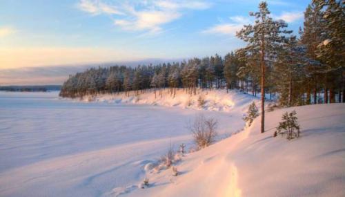 Карельская зима – это настоящая морозная сказка. Несмотря на обилие пасмурных дней, выдаются очень хорошие солнечные периоды с ярким голубым небом и искрящимся снегом. Осадков выпадает много, снежный покров, небольшой в начале зимы, к февралю-началу марта достигает своих максимальных значений (1,5 метра и более).