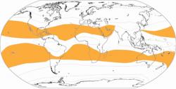 Тропический климатический пояс – это климатический пояс, который располагается между субтропическим и субэкваториальным поясом. Зимой температура воздуха здесь не ниже 14 °C, а летом 30-35 °С, осадков очень мало 50-150 мм/год (исключение побережья материков). Все осадки в основном выпадают зимой, там, где их мало находятся пустыни и полупустыни, в областях со сравнительно большими осадками - листопадные леса и саванны... подробнее