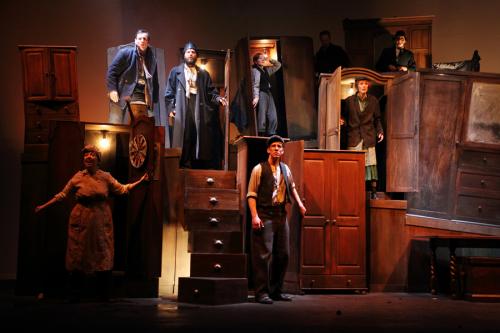 Театральные постановки в стиле постмодернизма появились во второй половине двадцатого века, и они использовали те же философские мотивы, которые характерны для живописи или литературы данного направления.
