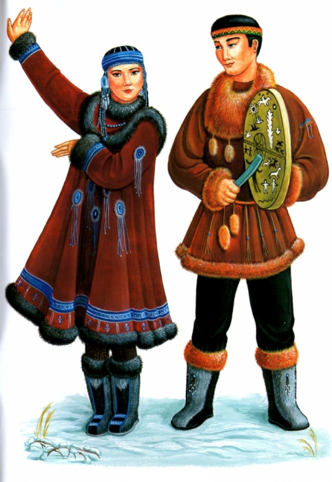 Национальная чукотская одежда – это удобное и теплое одеяние. Мужчины носят двойную меховую рубаху, двойные меховые штаны, также меховые чулки и сапоги из идентичного материала. Мужская шапка чем-то напоминает женский капор. Женская одежда также состоит из двух слоев, только штаны и верхняя часть сшиты между собой. А летом чукчи одеваются в более легкие одежды – балахоны из оленей замши и других ярких тканей. На этих нарядах зачастую встречается красивая обрядовая вышивка. Маленьких деток, новорожденных одевают в мешок, сшитый из оленей шкуры, в котором есть прорези для рук и ног.