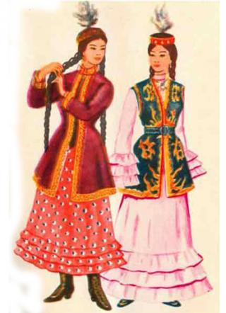 Национальной одеждой казахов является кочевая одежда, изготовленная из шерсти животных - верблюжьей, овечьей и козьей. Эта одежда не отличается особой красочностью, но она удобна и символична для казахского народа.