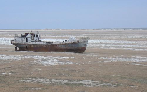 (Вид измельчавшего Аральского озера)