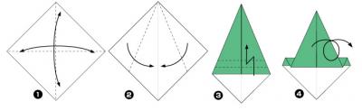 Ёлка - дерево, зеленое в любое время года. Каждый новый год ёлка становится украшением дома, её наряжают игрушками, а на макушку можно поставить красную звезду . Сделать ёлочку из бумаги совсем просто, если следовать несложным инструкциям на схеме-картинке.
