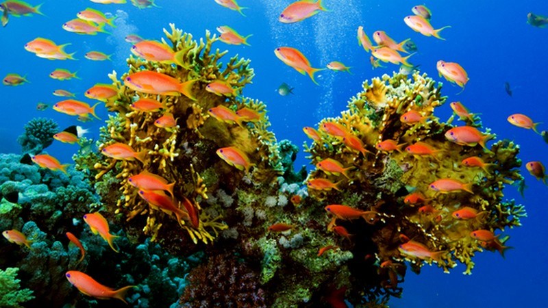• Кораллы – скопления миниатюрных животных, которые оснащены известняковым скелетом. Коралловые рифы – мощные природные образования, которые служат местом обитания огромного количества рыб и других морских животных. Самый большой коралловый риф тянется вдоль северо-восточного побережья Австралии. Это Большой Барьерный риф.