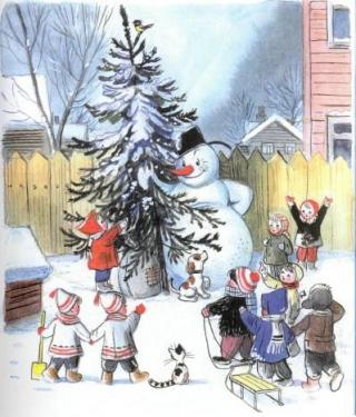 А утром Снеговик стоял на прежнем месте, только у него в руках вместо письма была ёлка.