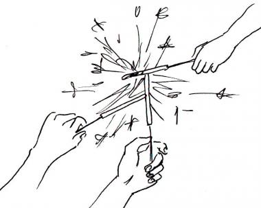 Ребята взяли спички и подожгли все бенгальские огни сразу.
