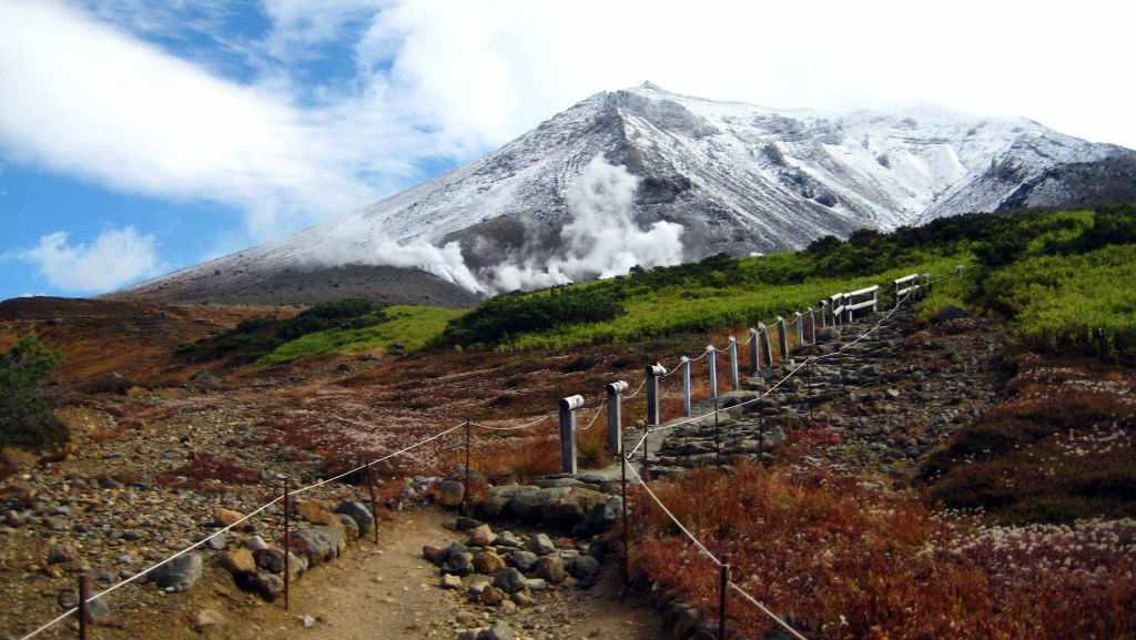 Большая часть японских вершин это потухшие или действующие вулканы (их около 200, из них 67 относят к категории «живых», т.е. действующих или спящих). Наиболее активные вулканы на территории Японии — Асосан (зарегистрировано более 70 извержений, его кратер – один из самых больших в мире), Михараяма, Асама, Сакурадзима.
