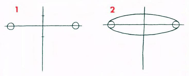 1. Проведите вертикальную линию и горизонтальную с точкой пересечения. Она, точка, станет центром в верхней части торта. По бокам горизонтальной линии на рисуйте два симметричных кружка.