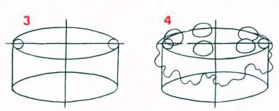3. По схеме проведите линии, как указанно на рисунке и должен получиться цилиндр. Это форма нашего торта.