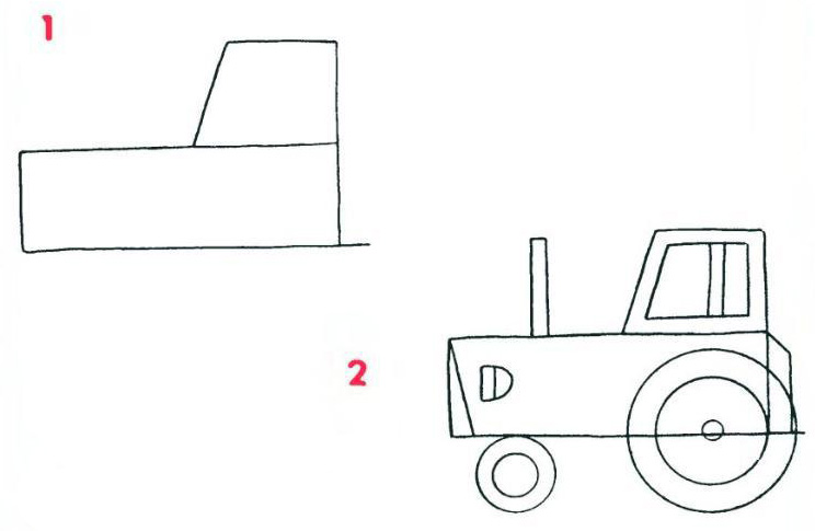 Трактор - ходит в поле труженик, тянет за собой плуг, поливает, удобряет, ухаживает за сельскохозяйственными угодьями. И день и ночь доносится с поля "Т-рр" "Т-рр". трудная это работа на поле. Нарисовать трактор карандашом совсем просто, если следовать несложным инструкциям на схеме-картинке.