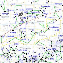 Данное созвездие находится рядом с Большой Медведицей, поэтому найти его на небе не составит труда. Самым известным объектом Малого Льва является Праеципия, которая представляет собой оранжевого гиганта. Удалённость данного объекта от нашей планеты составляет 98 световых лет.