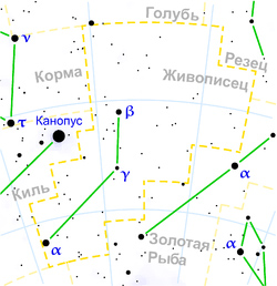 Созвездие в южном полушарии, занимающее по площади 290 квадратных градусов и содержащее более 70 звезд, различимых невооруженным глазом.