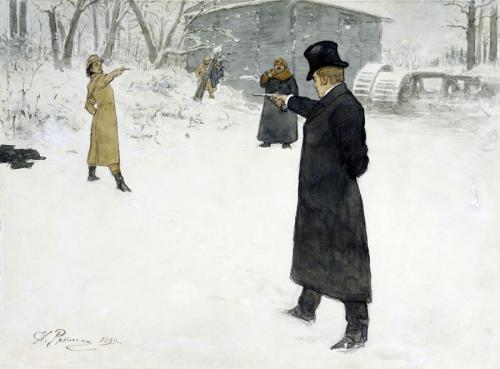 (Картина И. Е. Репина "Дуэль Онегина с Ленским" 1899)