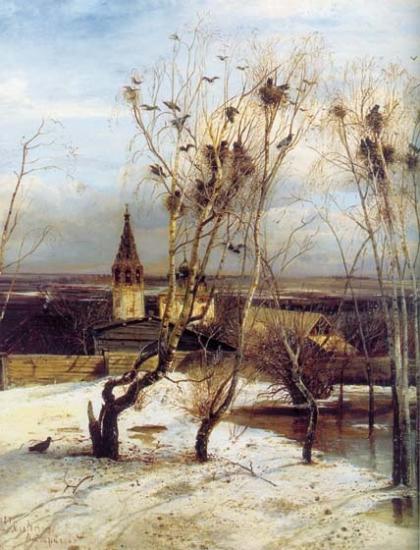 Картина художника-передвижника Алексея Саврасова стала одной из ключевых в русской живописи. Эта картина - тихий гимн русской природе, весне, которая еще только начинается, весеннему настроению, которое только пробуждается в нас. Эта картина говорит о весне не прямо, а намеком, чувством, что весна началась буквально в этот миг, когда мы взглянули на картину. Так бывает, когда человек, долго носивший теплую куртку во время холодной зимы, вдруг однажды вышел в ней на улицу и заметил: "Стоп, а ведь теплая одежда больше не нужна, весна началась и теперь с каждым днем будет теплее."