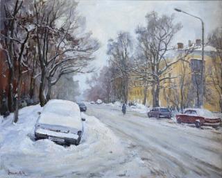 Деревья в парке и вокруг школы покрылись тонким слоем снега и инея, в воздухе засверкали тысячи серебряных дождей, хоть снимай и запасай для новогодней елки! Школьная детвора пытается слепить снежки, но снег еще не влажный, он совсем «молодой», снежки не получаются. Зато сколько радости и веселья! Кого-то уже повезли на санках, но санки цепляются за асфальт и скрежещут железом, только это не главное — зато выпал снег!