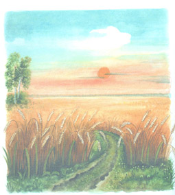 (Иллюстрация: Геннадий Целищев) * * * Гаснет вечер, даль синеет, Солнышко садится, Степь да степь кругом - и всюду Нива колосится! Пахнет медом, зацветает Белая гречиха... Звон к вечерне из деревни Долетает тихо... А вдали кукушка в роще Медленно кукует... Счастлив тот, кто на работе В поле заночует! Гаснет вечер, скрылось солнце, Лишь закат краснеет... Счастлив тот, кому зарею Теплый ветер веет; Для кого мерцают кротко, Светятся с приветом В темном небе темной ночью Звезды тихим светом; Кто устал на ниве за день И уснет глубоко Мирным сном под звездным небом На степи широкой!