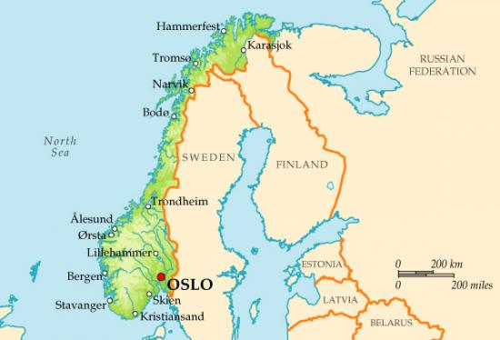 Страна граничит с Финляндией, Швецией и Россией. Общая ее площадь составляет 324 200 км квадратных.