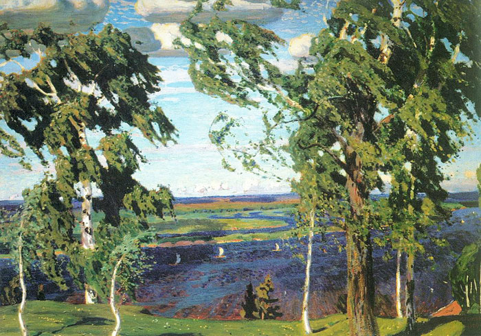Посмотрите на картину А. Рылова, которая также называется "Зеленый шум". Соответствует ли она стихотворению? А какие краски использовали бы вы?