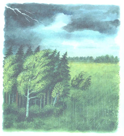 Вы видите, каким разным может быть дождь: ласковый и теплый, бурный, шумный и грозный, сопровождаемый раскатами грома.