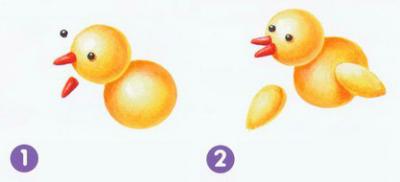 Цыплёнок - еще маленький и совсем жёлтенький. Он недавно вылупился из яйца, поэтому часто пищит в поисках мамы-курочки и весело клюёт зернышки. Слепить из пластилина цыплёнка совсем просто, если следовать несложным инструкциям на схеме-картинке.