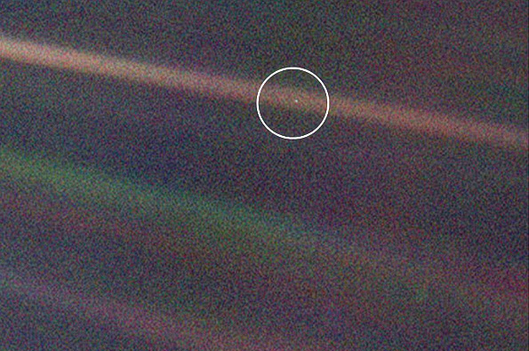 (Самый далекий снимок Земли из космоса сделанный Вояджером-1. Так приблизительно можно увидеть планету Земля с планеты Нептун)
