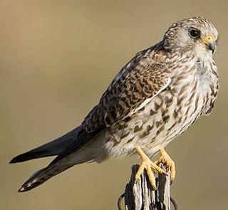 Пустельга - мелкий сокол величиной с галку. Он легок и быстр в полете, но добычу высматривает, медленно паря в воздухе, распластав широкие крылья. Часто можно видеть, как пустельга зависает над землей, будто останавливается, а потом, камнем бросаясь вниз, через мгновение взлетает с мышью, ящерицей или змеей в лапах. Охотится она и на саранчу. Зимой, когда корма мало, добывает и мелких птиц.