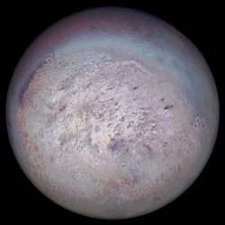 Тритон - самый большой спутник Нептуна, имеющий разряженную атмосферу. Он вращается вокруг планеты в обратном направлении по кругу. Поверхность Тритона покрыта льдом из азота и метана, и имеет незначительное количество ударных кратеров. Это говорит о сравнительно молодом возрасте спутника. Тритон вращается вокруг Нептуна по орбите, представляющую собой практически правильную окружность. Но в результате взаимодействия планеты и спутника в далеком будущем произойдет столкновение. Тритон либо будет разрушен, образовав новое кольцо вокруг Нептуна, либо упадет на планету.